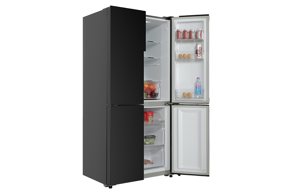 – Aqua Inverter 456 lít AQR-M525XA(FB) thuộc kiểu tủ lạnh MultiDoor bắt mắt với chất liệu cửa tủ làm bằng thép không gỉ và màu đen ngọc trai sang trọng, dễ dàng phối hợp với các nội thất khác bên trong nhà bếp.